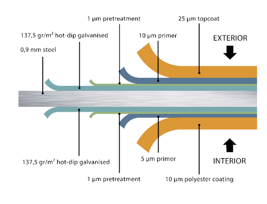 All profiles of classico consist of galvanised steel (hot-dip galvanised).The steel plates have a zinc layer measuring 275g/m2. Telluria uses only high-quality steel from European suppliers. We make steel in a high-tech and efficient way from A to Z, from raw material to finished product.This way, we can guarantee that you get the best in the house, for your garden.