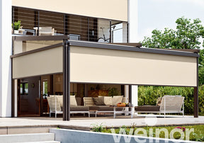The Weinor VertiTex II vertical awning is a versatile vertical sun protection and privacy screen designed for patio roofs, pergolas, balconies, windows and conservatories. It provides effective protection from low sun, heat and prying eyes, helping you enjoy your outdoor and indoor spaces in greater comfort.