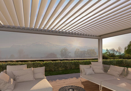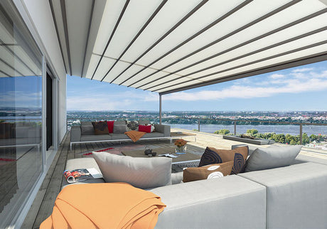 Perfect for garden terraces, glass verandas and covered patios, the Sottezza awning helps create a comfortable space for relaxing, dining and entertaining outdoors.